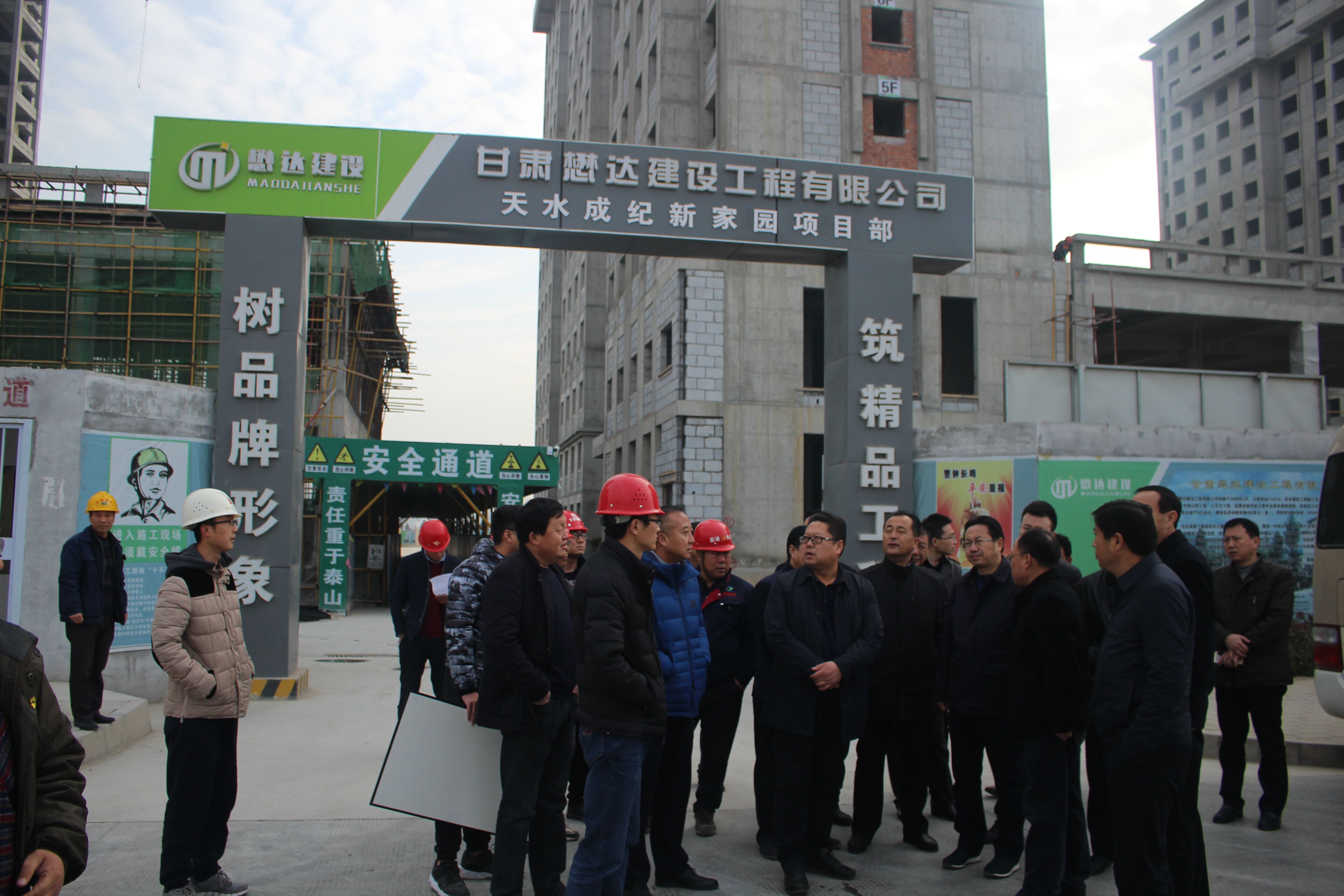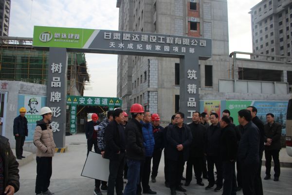 2016年12月7日上午,天水市副市長(zhǎng)何東帶領(lǐng)市直有關(guān)部門(mén),來(lái)甘肅懋達(dá)建設(shè)工程有限公司承建的天水成紀(jì)新家園棚戶區(qū)改造項(xiàng)目一期工程五標(biāo)段檢查指導(dǎo)工作。