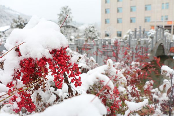 初春的第一場(chǎng)雪,把徽縣這座美麗的江南小城裝扮的更加俊俏了,然而懋達(dá)公司院內(nèi)的花花草草,把春雪的美詮釋的更加完美。