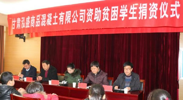 1月11日下午,甘肅泓盛商品混凝土有限公司資助貧困學生捐資儀式在徽縣政府綜合樓20樓2號會議室隆重舉行。縣教育局副局長黃潤珍、團縣委副書記李姣、縣學生資助中心主任張?zhí)嵭、公司領導張志強、尹向宏出席儀式,受助學生、學生家長以及有關單位負責人共計80余人參加儀式。