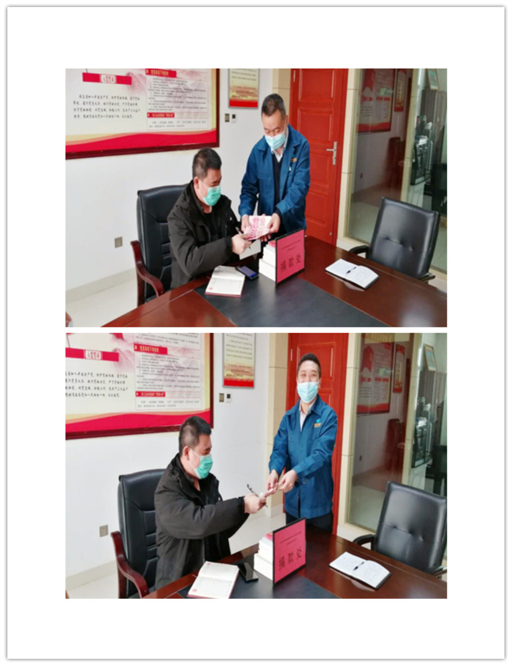 黨支部書記、公司副總經(jīng)理尹向宏,支部預備黨員、公司副總經(jīng)理邵曉輝分別將愛心捐款交到了捐款處。