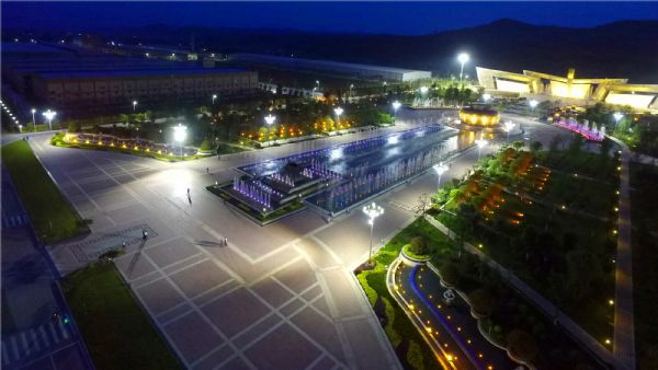 榮獲甘肅省建設(shè)工程飛天獎(jiǎng)的金徽酒股份有限公司優(yōu)質(zhì)酒釀造技術(shù)改造項(xiàng)目景觀廣場全景圖。
