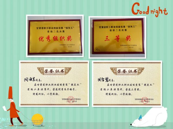 懋達(dá)建設(shè)參賽選手周智慧、周海軍在比賽過(guò)程中,以過(guò)硬的職業(yè)技術(shù)圓滿(mǎn)完成了比賽,最終周智慧以總成績(jī)81.1分獲得了本次競(jìng)賽三等獎(jiǎng)的良好成績(jī),周海軍以總成績(jī)77.9分獲得了優(yōu)秀選手榮譽(yù)稱(chēng)號(hào)。甘肅懋達(dá)建設(shè)工程有限公司等八家公司榮獲優(yōu)秀組織獎(jiǎng)。