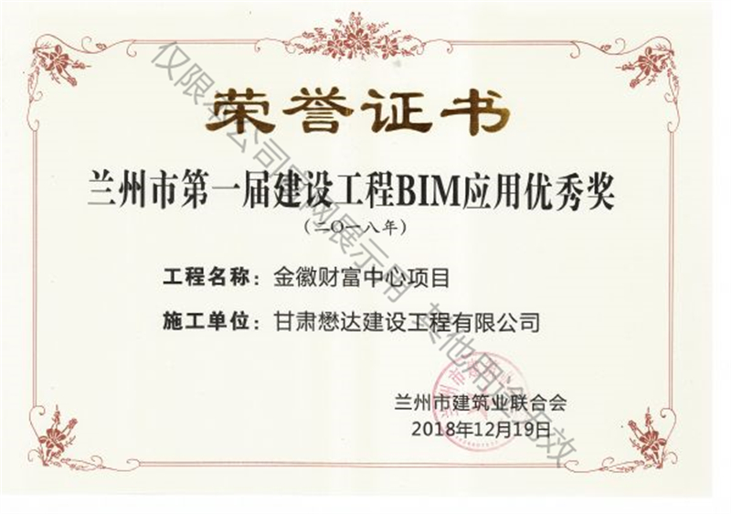 金徽財富中心項目--蘭州市第一屆建設(shè)工程BIM應(yīng)用優(yōu)秀獎