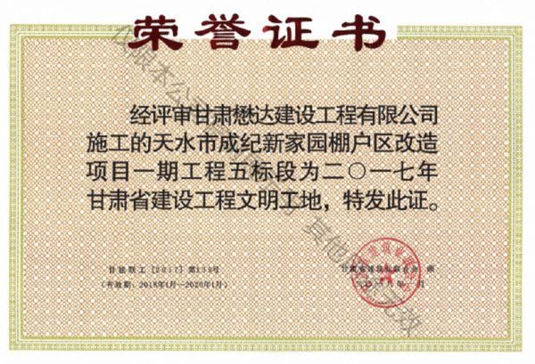 天水市成紀新家園棚戶區(qū)改造項目一期工程五標段--2017年度甘肅省建設(shè)工程文明工地