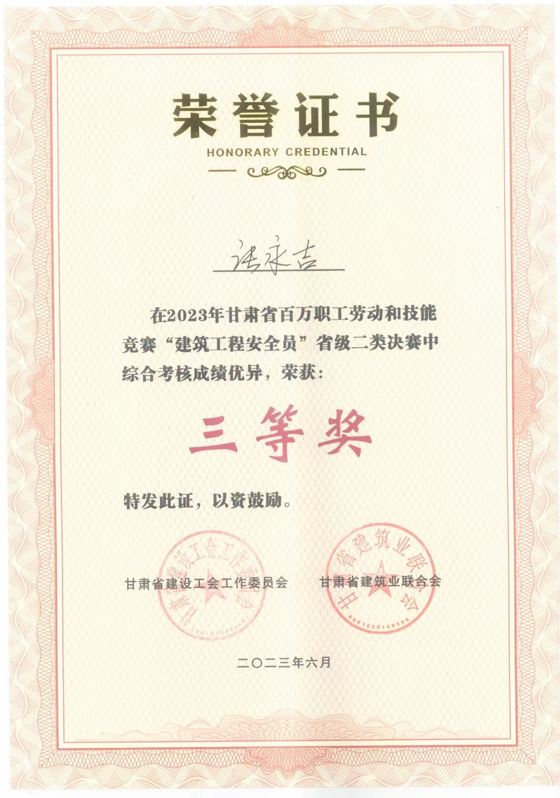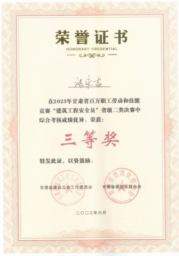 競(jìng)賽依據(jù)建筑行業(yè)相關(guān)安全法律法規(guī)及標(biāo)準(zhǔn)規(guī)范,由理論知識(shí)考試和實(shí)際操作考核兩個(gè)模塊組成,來自全省的29個(gè)代表隊(duì)的58名安全員參加了此次競(jìng)賽活動(dòng)。經(jīng)過一天的激烈角逐,懋達(dá)建設(shè)張永吉榮獲甘肅省職工職業(yè)技能競(jìng)賽“建筑工程安全員”省級(jí)二類決賽三等獎(jiǎng)。